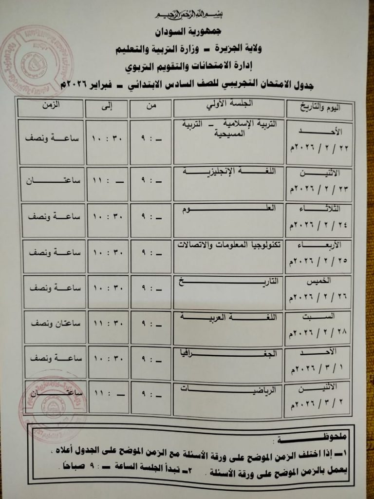 جدول إمتحان الشهادة السودانية يونيو2025م
